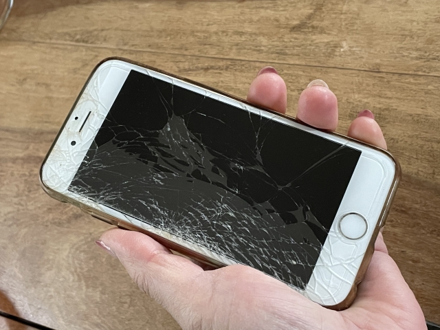 ①画面が割れているが、それ以外の機能が正常に動作しているiPhone